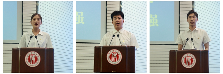 李昕傢同学代表全体研究生毕业生发言、张华鑫同学代表全体本科毕业生发言、陈烁宇同学代表全体在校生发言、谢亚军先生代表全体毕业生家长致辞、于海教授代表全体教师致辞。
