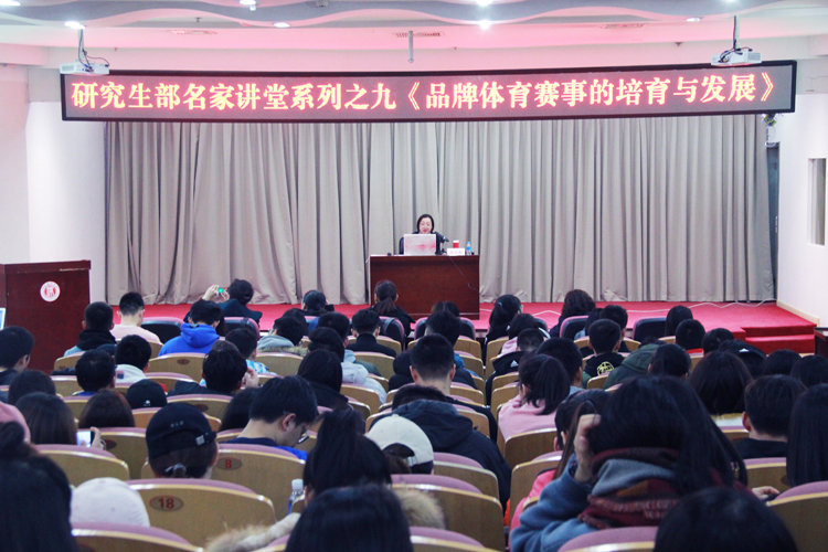 11月30日,社会体育学院、研究生部联合在图书馆二楼报告厅举办了《品牌体育赛事的培育与发展》讲座,主讲人是上海晰维体育管理有限公司董事长、上海体育学院和美国田纳西大学联合培养博士由会贞女士,社会体育学院副院长冯欣欣主持讲座,部分教师及全体2018级硕士研究生听取讲座。