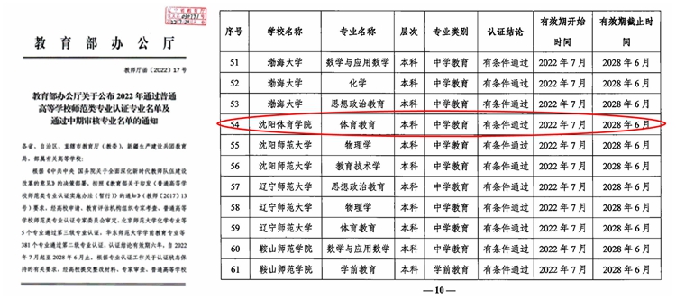 师范类专业第二级认证,成为全国体育专业院校首批通过该项认证的体育类专业。