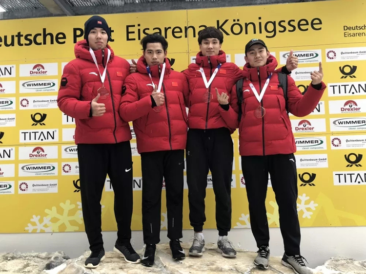 孙凯智(右一)在颁奖现场。 2019年IBSF国际雪车联合会世界青年锦标赛在德国举行,北京时间2月3日晚进行了男子四人车比赛,共有来自10个国家21组选手参赛。 我校学生运动员孙凯智与其他三人团结协作、奋勇拼搏,在U23比赛中,以0.01秒的优势战胜罗马尼亚名将Tenten组合夺得冠军。 新闻作者:竞技体校 邹芳宁 责任编辑:朱翠立 新闻日期:2019-02-05 点击:次