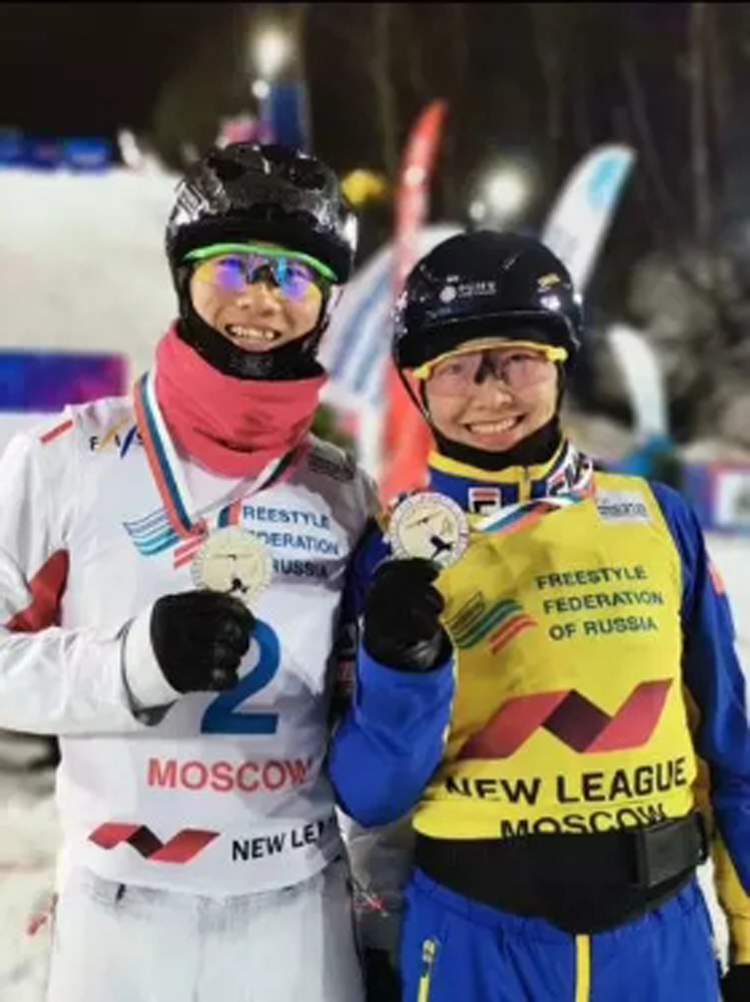 王心迪(左一)、徐梦桃(右一)在颁奖现场 2月16日,国际雪联自由式滑雪空中技巧世界杯俄罗斯站比赛在莫斯科落下帷幕,我校师生不畏强手、顶住压力,教练员兼运动员徐梦桃获得女子铜牌;王心迪从俄罗斯众多高水平运动员中突破重围,摘得银牌。 新闻作者:竞技体校 邹芳宁 责任编辑:朱翠立 新闻日期:2019-02-18 点击:次