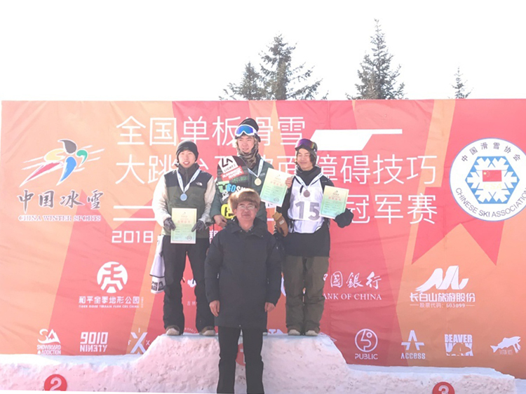 王莅文(左一)、杨文龙(后排中)在领奖现场 李东宇(左一)在领奖现场 惠义宁(左一)在领奖现场 2月26日,2018-2019年度全国单板滑雪大跳台/坡面障碍技巧冠军赛在吉林省长白山滑雪场落下帷幕。 本次比赛全国共有11个代表单位参赛,运动员60余人,我校有3男3女参加比赛,取得了1金 3银的优异成绩。 杨文龙、王莅文包揽单板滑雪大跳台比赛男子组冠、亚军;李东宇获单板滑雪大跳台女子组亚军;惠义宁获单板滑雪坡面障碍技巧男子组亚军。 新闻作者:竞技体校 邹芳宁 责任编辑:朱翠立 新闻日期:2019-02-28 点击:次