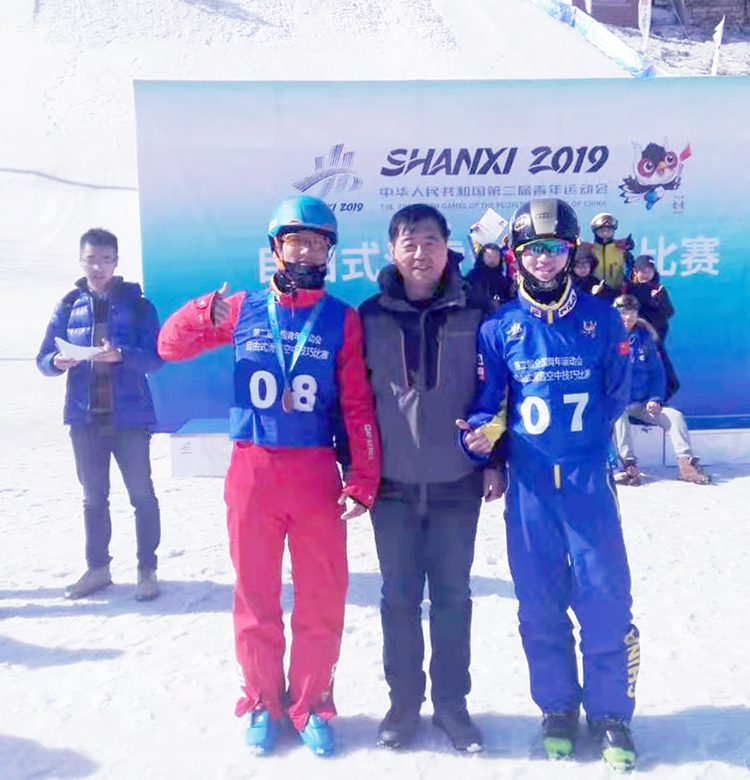 我校竞技体校校长刘大可(中)与杨龙啸(右)、李伯颜(左)合影 我校竞技体校校长刘大可(左)与跨项组运动员陈梅婷(右)合影 全国第二届青年运动会自由式滑雪空中技巧比赛于3月7日—9日在长春莲花山举行,我校运动员共获得2金2银2铜的优异成绩。 杨龙啸获得自选动作男子组冠军,规定动作男子组亚军;李伯颜获得自选动作男子组亚军,规定动作男子组季军;陈梅婷(沈体跨项组)获得规定动作女子组冠军,自选动作女子组季军。 新闻作者:竞技体校 邹芳宁 责任编辑:朱翠立 新闻日期:2019-03-11 点击:次