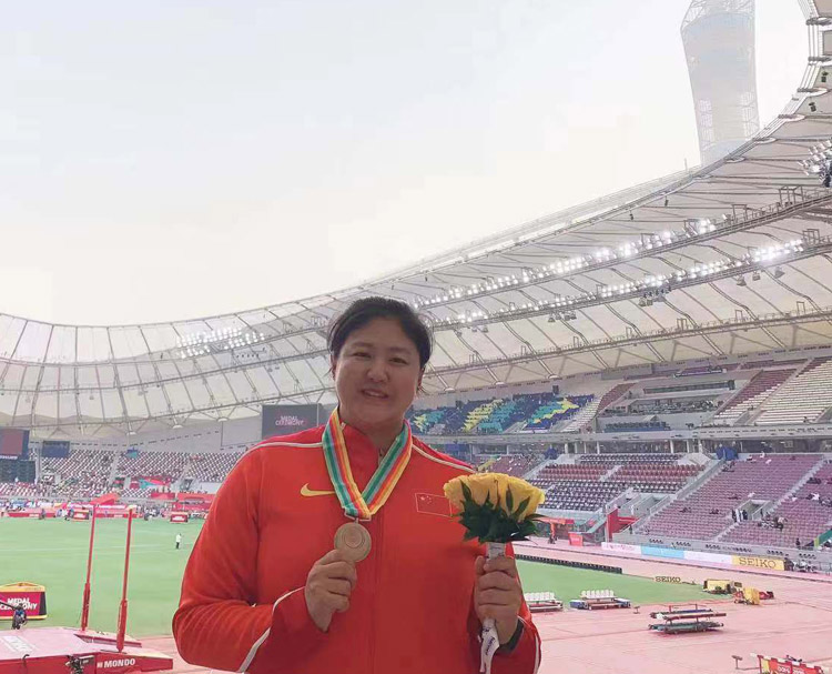 北京时间10月1日,我校田径教研室教师李玲在“2019多哈田径世锦赛”开赛之际,授国际田联邀请赴卡塔尔多哈世界杯比赛场地,领取“2007年大阪田径世锦赛”女子铅球铜牌。