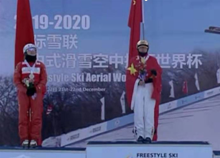 徐梦桃(右)在领奖现场 12月21日-22日,2019-2020年度国际自由式滑雪空中技巧世界杯分站赛(第一站、第二站)在长春莲花山滑雪场举行,本次比赛共有来自9个国家22名女运动员,22名男运动员参赛。经过两天激烈角逐,我校运动员共获得2金2银2铜。 徐梦桃获得第一站、第二站女子个人两枚金牌,第二站混合团体铜牌;贾宗洋获得第一站男子个人银牌,第二站男子个人铜牌、混合团体铜牌;杨龙啸获得第二站混合团体银牌。 新闻作者:竞技体校 邹芳宁 责任编辑:朱翠立 新闻日期:2019-12-23 点击:次