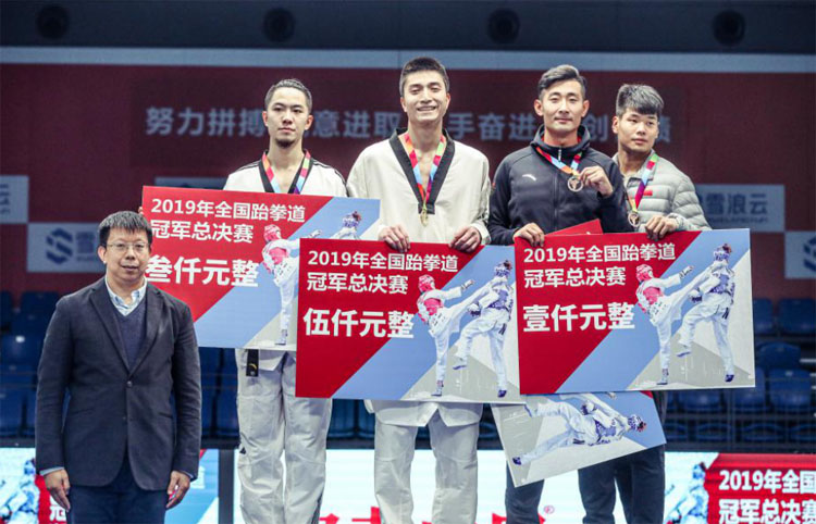我校运动员杨艺(右二)在领奖现场 12月23日至25日,由中国跆拳道协会主办的“2019年全国跆拳道冠军总决赛”在江苏省无锡市太湖国际博览中心举行。 本次比赛共有来自全国29个省301名运动员参赛。我校共有2名运动员参赛,经过3天的激烈争夺,我校运动员杨艺取得男子+87KG铜牌。 新闻作者:竞技体校 邹芳宁 责任编辑:朱翠立 新闻日期:2019-12-27 点击:次
