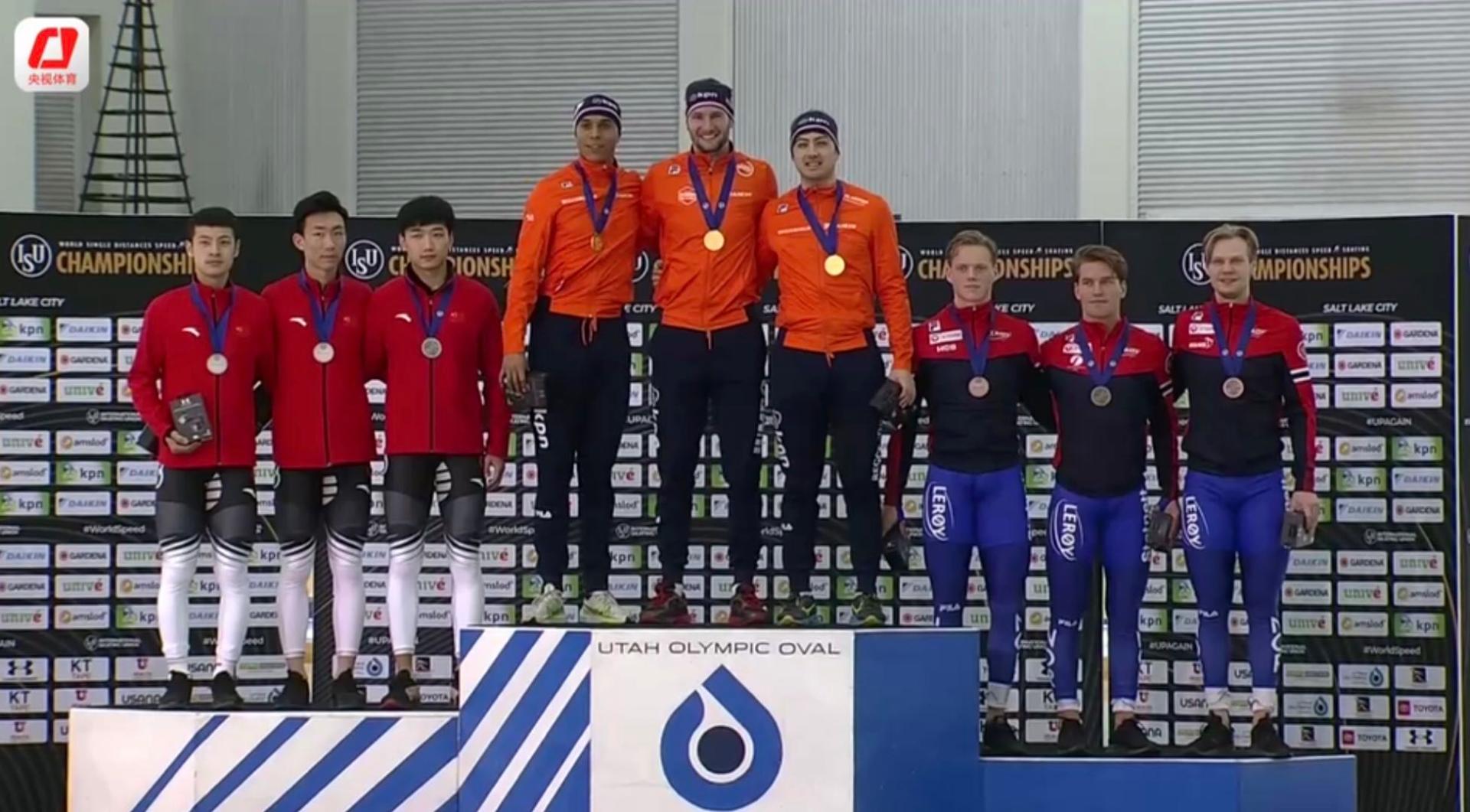 王世伟(左二)参加颁奖仪式 当地时间2月13日,在美国盐湖城举行的2019-2020赛季速度滑冰世界单项锦标赛中,我校运动员王世伟与宁忠岩、高亭宇搭档的中国组合以1分18秒533的成绩获得男子短距离团体追逐项目第二名,这一成绩与冠军只差0.35秒。本次世锦赛银牌的取得,是继1996-1997赛季我校运动员薛瑞红世锦赛夺冠23年后再次登上速度滑冰项目世锦赛领奖台。 新闻作者:竞技体校 林辰临 责任编辑:江志强 新闻日期:2020-02-16 点击:次