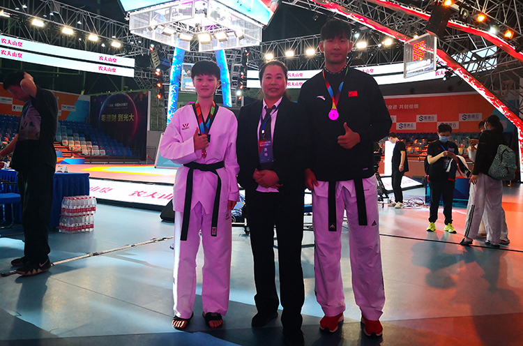 2020全国跆拳道锦标系列赛前两站比赛于9月18日-30日,在江苏无锡举行,本次比赛是受疫情影响以来第一次线下比赛,共有来自全国35支代表队,近1000名选手,全封闭参赛。我校跆拳道队选派8名运动员参赛(杨艺为教练员兼运动员),其中第一站比赛杨艺、王博文分获男子87KG以上级第三名、女子49公斤以下级第三名;第二战比赛杨艺、赵志远、杜嘉航分获男子87公斤以上级第五名、男子68公斤以下级第五名、女子53公斤以下级第五名。