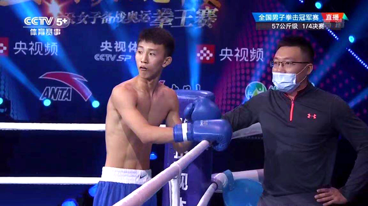 我校运动员白荣耀在12月9日下午的57KG级1/4比赛中,开场不到8秒,抓住空档一记后手直拳正中贵州选手叶明浩下颚,将其击倒。随后裁判终止比赛,宣判白荣耀以KO方式获得胜利晋级四强。白荣耀取胜的同时创造了该项赛事用时最短击倒对手获胜记录。