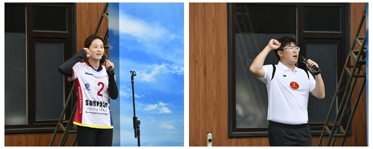 运动会沙滩排球比赛暨首届“明星体育杯”沙滩排球赛开幕。各位领导、老师为本次比赛开球。运动员高思娜,裁判张汉柏代表全体运动员、裁判员宣誓。