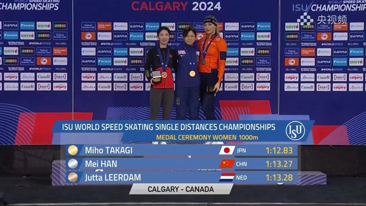 2月19日,2023-2024赛季国际滑联世界速度滑冰单项锦标赛在加拿大卡尔加里落下帷幕。我校培养输送运动员韩梅取得2枚银牌。 韩梅(左一)在女子1500米赛后领奖瞬间 在女子1500米比赛中,韩梅以1分52秒72的成绩获得银牌,这是她本赛季第二次刷新由她本人保持的全国记录。在其他3个参赛项目中,韩梅还获女子1000米银牌、女子团体追逐第五名和女子3000米第七名的优异成绩。 韩梅(左一)在女子1000米赛后领奖瞬间 新闻作者:附属竞技体育看球吧 林辰临 责任编辑:全魁博 新闻日期:2024-02-20 点击:次