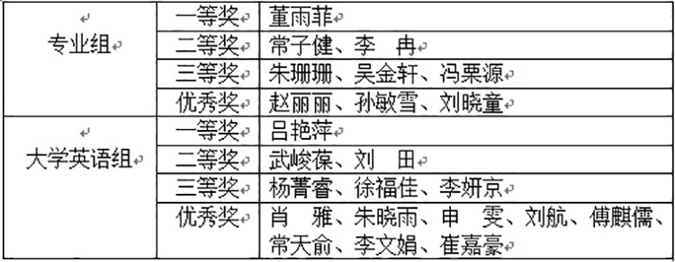 师生在现场合影 9月18日,由竞训处和管理与新闻传播学院主办、外语教研室承办的第11届校园英语演讲比赛在我校图书馆报告厅落幕。 来自全校各二级学院20余名选手展开了激烈角逐,最终董雨菲、吕艳萍分获专业组和大学英语组一等奖。两位选手将代表我校参加10月20日在辽宁大学举行的2018 年辽宁省普通高等看球吧 本科大学生英语演讲大赛暨2018“外研社杯”全国英语演讲大赛辽宁分赛区大赛。具体获奖情况如下: 新闻作者:管理与新闻传播学院 徐旸 责任编辑:朱翠立 新闻日期:2018-09-20 点击:次