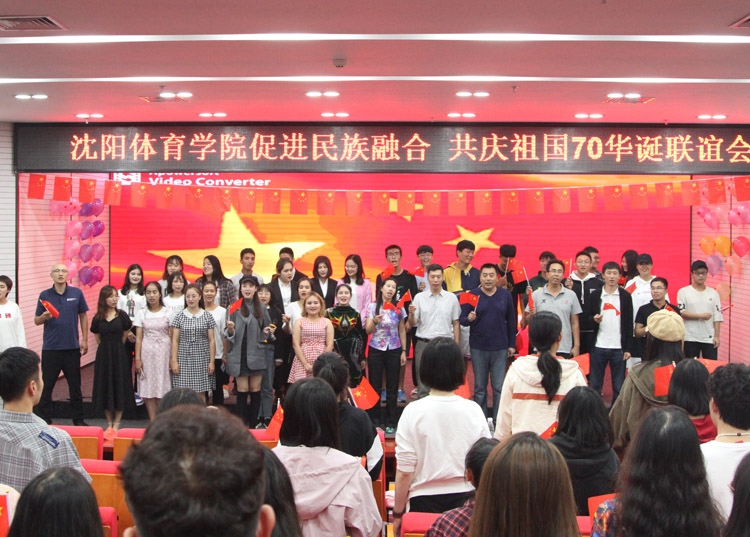 在图书馆二楼报告厅开展“促进民族融合 共庆祖国七十华诞”为主题的联谊活动。学工部副部长郭大军、管新学院党总支副书记高鸿雁,辅导员代表王旭东等与各民族学生70余人欢聚一堂,共迎祖国生日、共叙师生情谊、共话民族团结。