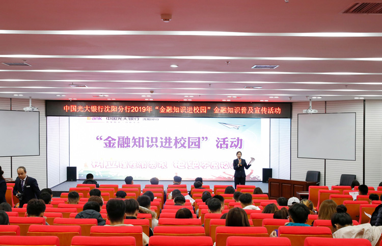 10月25日晚,中国光大银行沈阳分行2019年“金融知识进校园”金融知识普及宣传活动在我校图书馆二楼报告厅举行。此次活动由中国光大银行沈阳分行金融知识普及队成员高雪和姚峥峥主讲。