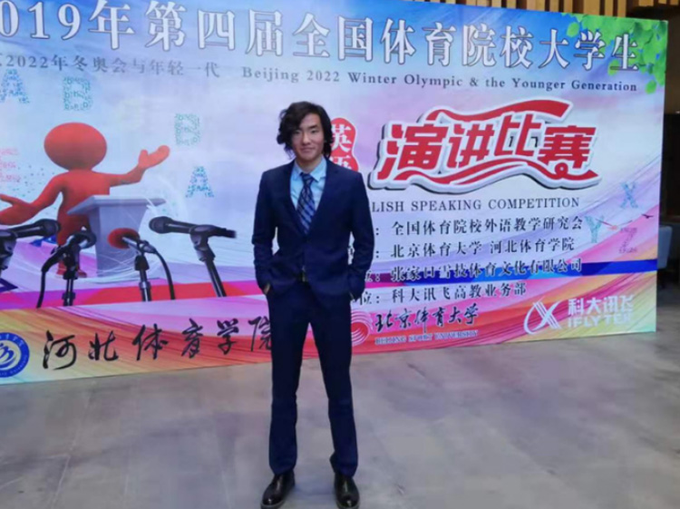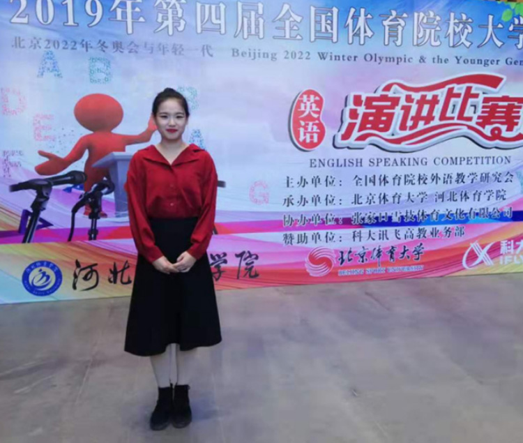12月7日,由全国体育院校外语教学研究会主办、北京体育大学和河北体育学院承办的第四届全国体育院校英语演讲比赛在张家口崇礼云顶滑雪场圆满落幕。本次比赛共有来自全国13所体育院校的选手参加。我校英语专业2016级董雨菲获得专业组二等奖,运动训练专业(英语)2018级张浩伟获得非专业组一等奖。