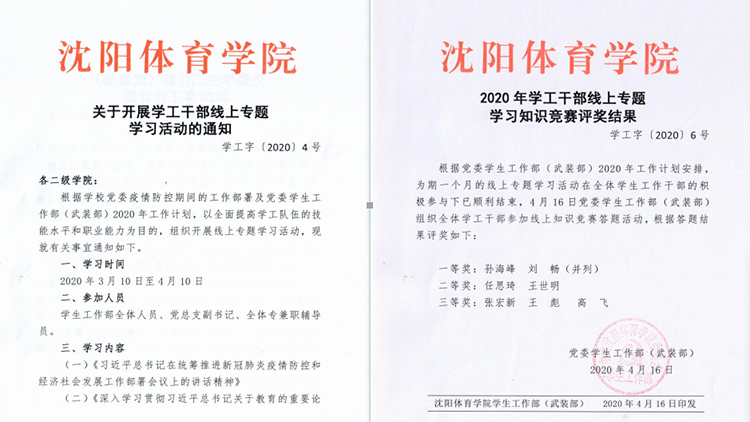 组织全校学生工作干部开展了为期一个月的线上专题学习活动。4月16日,全体学工干部参与线上知识竞赛100问的答题活动,检测学习效果,巩固学习内容,活动最终评选出一等奖2名,二等奖2名,三等奖3名。