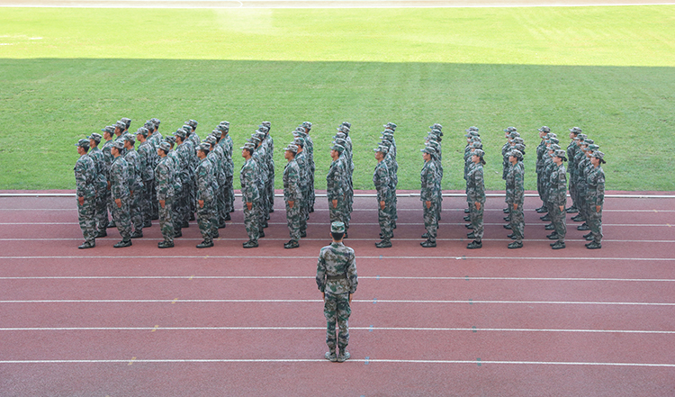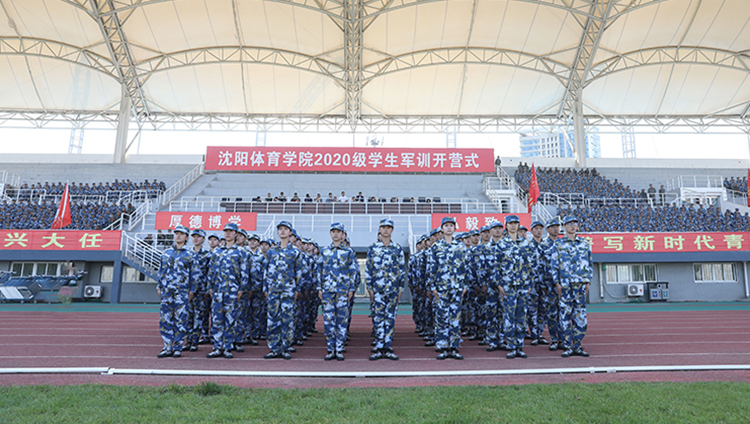 在新生军训队列展示过程中,6支推选班级及教官队伍分别进行军训汇报表演,一队队方阵整齐有序地进入表演场地,展示十天来的训练成果——分列式表演、稍息立正、停止间转法、敬军礼、军姿站立、跨立等军事训练项目。他们步伐整齐、口号嘹亮;军姿飒爽、斗志昂扬,充分展现了沈体学子良好的精神风貌。