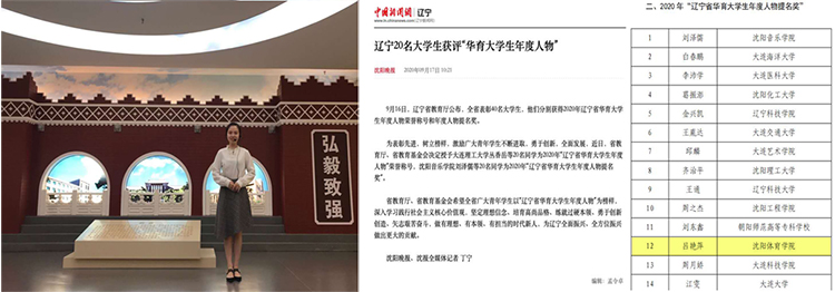 推荐、专家评审,我校管理与新闻传播学院2017级新闻学专业吕艳萍荣获2020年“辽宁省华育大学生年度人物提名奖”。
