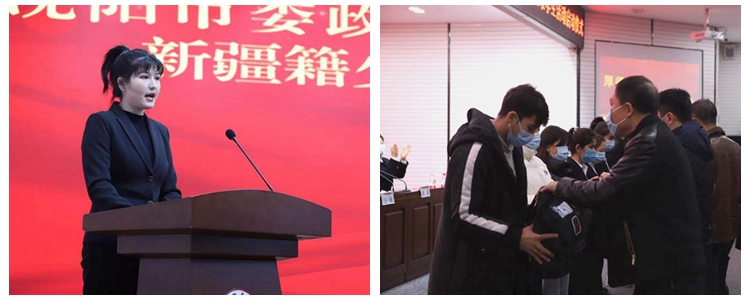 新疆籍少数民族学生基本情况,并向市委政法委的爱心捐赠表示感谢,他勉励同学们要心怀感恩、立志成才,做爱心的传递者,帮助他人、建设家乡、回馈社会,在奉献中实现人生价值。