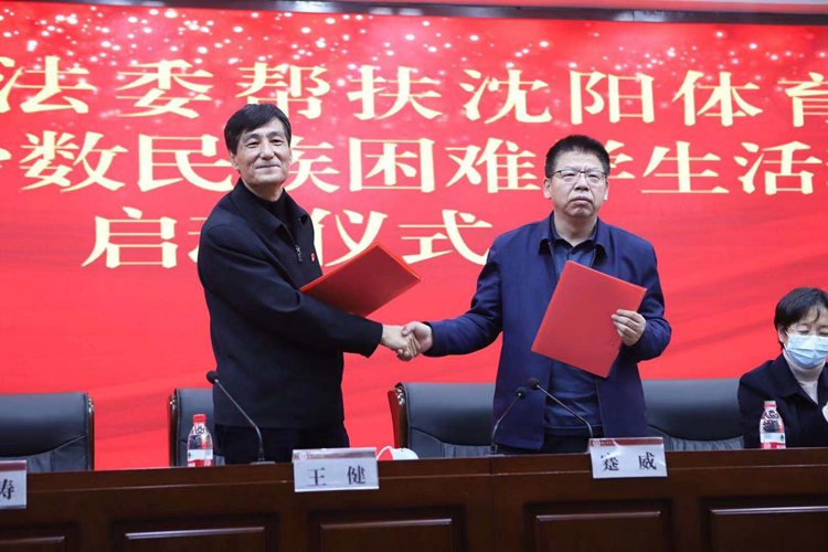 12月18日,沈阳市委政法委与我校新疆籍少数民族困难学生结对帮扶启动仪式在图书馆二楼报告厅举行,市委政法委政治部主任蹇威、机关党委专职副书记张波、市委政法委部分处室负责同志,看球吧