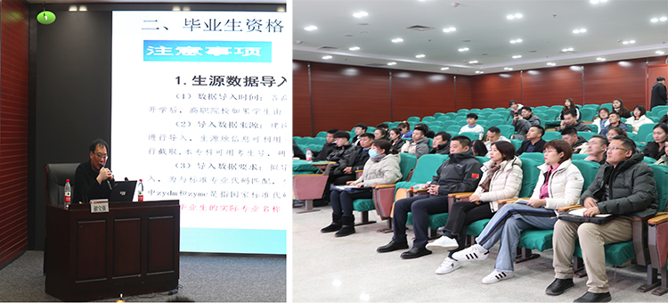 培训会上,郝宝强从“毕业生就业工作介绍”、“业务平台重点功能介绍”、“毕业生网上签约”三个方面进详细讲解,并结合学生生源、就业、派遣等方面管理对辽宁省智慧就业平台进行现场示范。郝宝强特别强调,当前业形势严峻,毕业生就业压大,辽宁省智慧就业创业云平台为毕业生进行线上就业登记和网上签约,给应届毕业生搭建了一个足不出校找工作平台,高校要充分发挥政策的导向和激励作用,做好毕业生就业动态的监控工作,为毕业生提供更多、更便捷的就业机会。此次培训旨在让我校师生了解最新的就业创业政策,提高就业工作人员的业务能力,确保就业数据上报的真实准确性,给毕业生提供更专业的就业指导与服务,促进我校就业工作的顺利开展。
