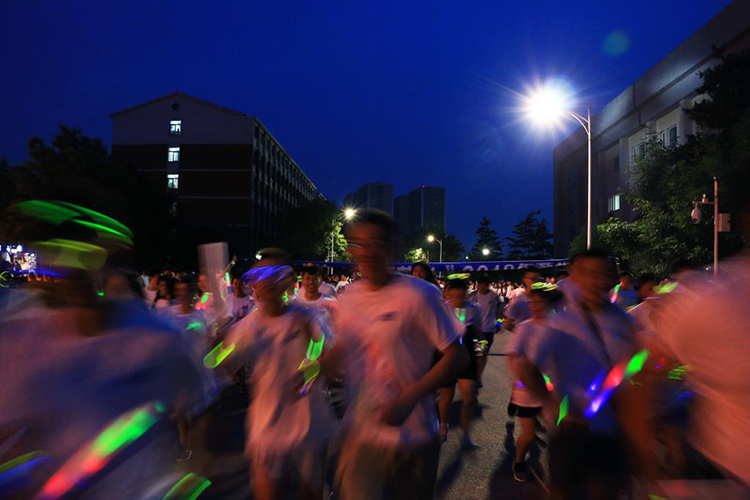 此次荧光夜跑活动采用个人报名的方式进行参与,参与者围绕组委会预先制定好的路线进行奔跑,全程约四公里,跑步路线用指示标做好标记,沿途的工作人员均手持荧光棒,以饱满的热情迎接夜跑大军的到来,在跑步路线中组委会还精心设计了5个游戏环节,目的是让通同学们在运动的过程中提高团结协作的能力,同时,活动进行中还设置了抽奖环节,将整场活动的氛围推向高潮。