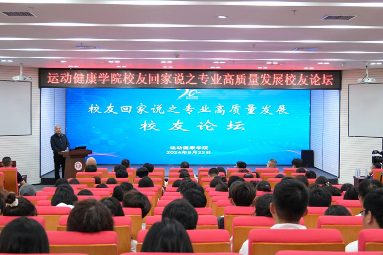 建校70周年高质量发展大会期间举办了系列活动,激励广大校友与母校携手并进,共创美好未来。9月22日,运动健康学院在图书馆二楼报告厅,举办校友回家说之专业高质量发展校友论坛。运动健康学院部分校友及全体师生参加论坛,运动健康学院院长张新安教授主持论坛。